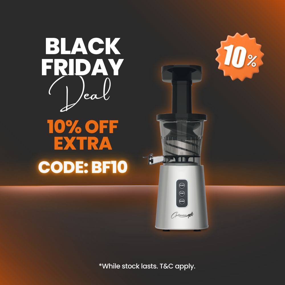 Der Optimum 600M Slow Juicer ist ein Kaltpress-Entsafter, der mit niedrigen 40-45 U/min läuft (je langsamer, desto besser), was bedeutet, dass er im Vergleich zu herkömmlichen Entsaftern den maximalen Saftgehalt aus Ihren Zutaten herauspressen kann.